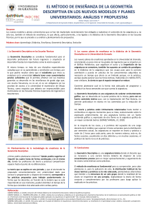 La contribución, presentada en forma de póster, tiene por título: El método de enseñanza de la Geometría Descriptiva en los nuevos modelos y planes universitarios: análisis y propuestas.